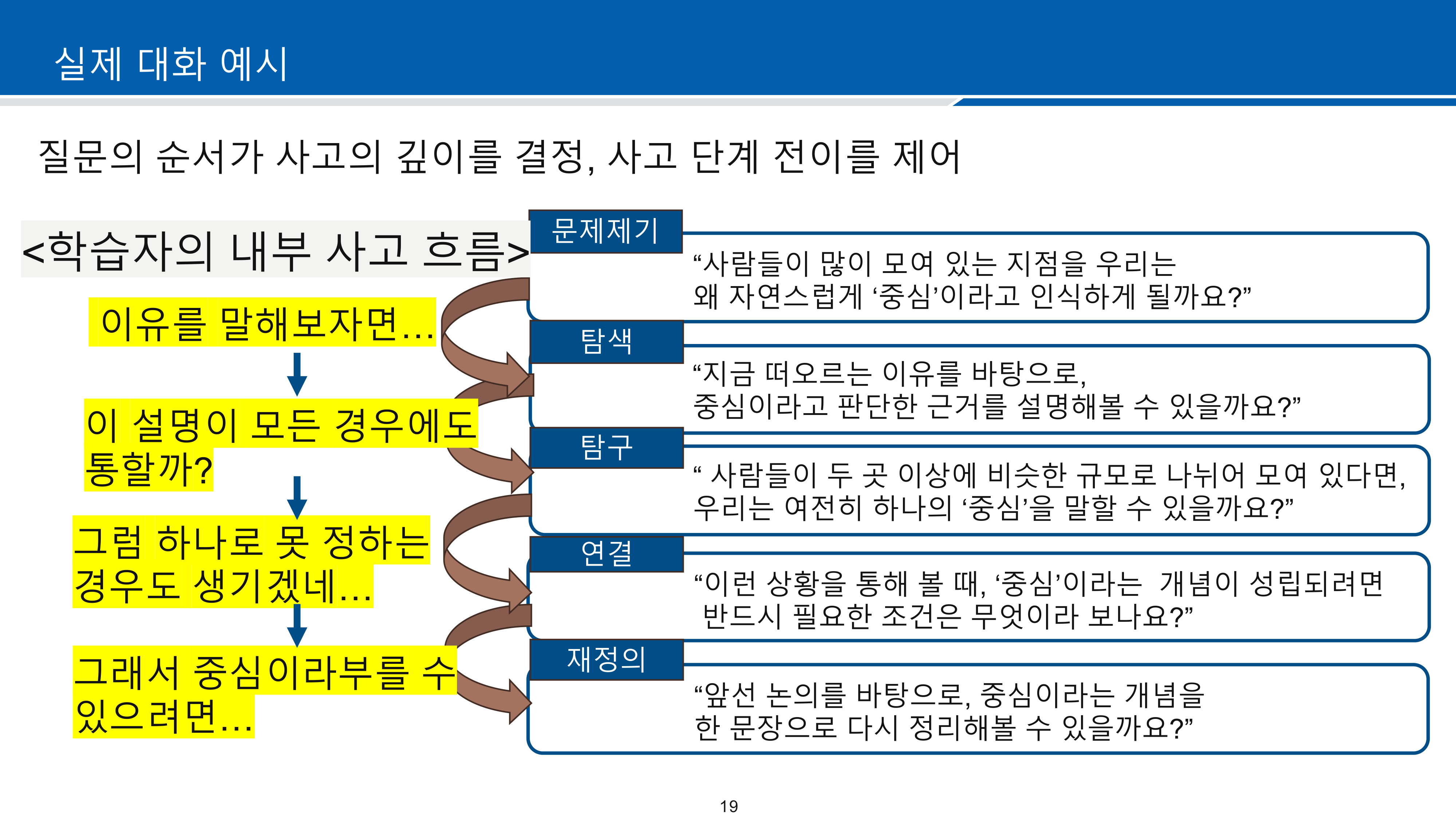- 문제제기 → 탐색 → 탐구 → 연결 → 재정의 단계로 설계
